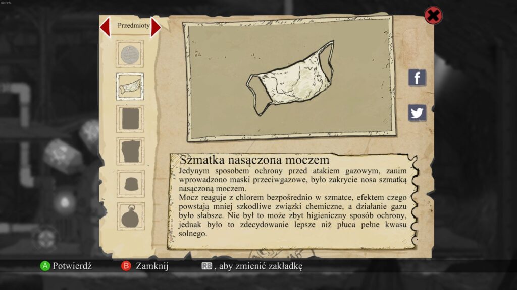 Fabuła prowadzi bohaterów (a więc i gracza) przez najważniejsze wydarzenia i bitwy z okresu 1914–1918 mające miejsce na terytorium Francji i Belgii. Jest więc Ypres – nazwa na zawsze zapisana w dziejach wojskowości, gdzie Niemcy po raz pierwszy i nie ostatni użyli chloru przeciwko walczącym z nimi żołnierzom Ententy (eksperymentowali już wcześniej z gazem łzawiącym, lecz zaniechali tego ze względu na niską skuteczność bojową tej substancji), by w pobliżu tego samego miasta, po upływie dwóch lat, posłużyć się gazem musztardowym: o tym, jak bardzo negatywne skojarzenia wywoływała broń chemiczna, świadczy najlepiej to, że ponad dwie dekady później, podczas II wojny światowej, żadna ze stron konfliktu – mimo posiadania olbrzymich zapasów tego rodzaju środków – nie zdecydowała się już na jej użycie (tyczyło się to nawet nazistów, którzy obawiali się konsekwencji ataku odwetowego aliantów bądź sowietów). Gra poświęca też rozdziały innym bitwom, które przeszły do historii; pod Verdun, gdzie życie straciło około 700 tysięcy ludzi, czy pod Sommą, gdzie padło ich milion, na polu walki zaś zadebiutowały czołgi (w ich temacie muszę się trochę popastwić, ponieważ Valiant Hearts pozwala wykorzystywać pancerne pojazdy do zestrzeliwania samolotów. A to, z historycznego punktu widzenia, jest bzdurą totalną). Wielkim plusem produkcji Ubisoftu jest fakt, że każdy z epizodów został wzbogacony o odpowiednie notki encyklopedyczne, co wpływa dodatnio na wartość edukacyjną tego tytułu. Mało tego: możliwe do odnalezienia opcjonalne artefakty jeszcze tę wiedzę poszerzają. Ich opisy pozwalają bowiem na szczegółowe zapoznanie się z codziennością życia (i śmierci) w okopach. Można się dzięki nim dowiedzieć sporo ciekawych rzeczy. Ja na przykład zrozumiałem, co w realiach I wojny światowej oznaczało słowo „lotka”. Otóż nie była to część zestawu do gry w badmintona, wyrazem tym nie określano też sytuacji, w której ktoś niezmiernie szybko zmienił zajmowaną przez siebie pozycję, na przykład zdezerterował. Lotkami nazywano metalowe przedmioty o zaostrzonych końcach, zrzucane na wrogą armię z samolotów i zeppelinów. W wyniku własnego ciężaru i nabranej prędkości były one zdolne przebijać hełmy i czaszki. Ha. Pomysłowość ludzka w wynajdywaniu jak najefektywniejszych i najtańszych sposobów uśmiercania bliźnich chyba nigdy nie przestanie mnie zaskakiwać.