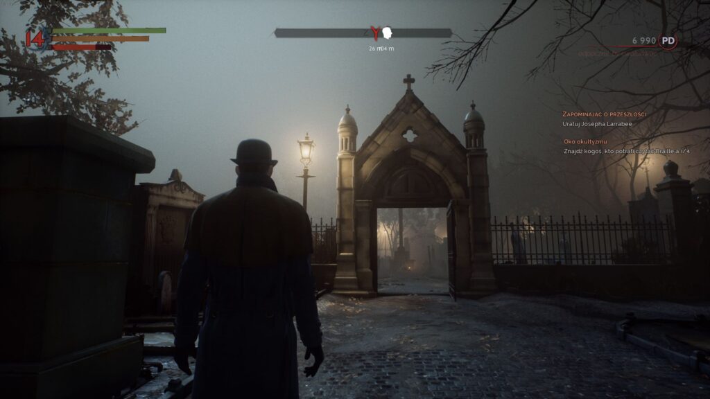Projektowi i wykonaniu dialogów także daleko do ideału. Rozmowy polegają na wskazywaniu tematów z dostępnego koła wyboru (kłania się Mass Effect, lecz nie tylko) i to jest jeszcze spoko. Natomiast dziwaczny rzut kamery podczas konwersacji, zdarzający się regularnie, już niekoniecznie. Zresztą, podglądem można obracać za pomocą gałki kontrolera (choć nie o 360 stopni, a tylko o 180), co prowadzi czasem do sytuacji kuriozalnych, jak na przykład zasłonięcie widoku plecami rozmówcy bądź… ścianą lub meblem. Mało tego: trafiają się NPC-ty wyjątkowo pokrzywdzeni przez los. Nie dość, że muszą zmagać się ze straszliwą epidemią, to w dodatku wiercą się na boki, jak gdyby połknęli drewniany kij (ewentualnie jakiś okrutnik-nienawistnik, w rodzaju Włada Palownika, włożył go im od tej drugiej strony). Zachwytów nie wywołuje także ich wygląd, podobnie jak całość oprawy wizualnej. Grafika, nawet na najwyższych możliwych ustawieniach, prezentuje standardy siódmej generacji konsol, chociaż muszę przyznać, że z czasem się do niej przyzwyczaiłem i doceniłem klimat paru miejscówek, z miejskim cmentarzem na czele. Jeśli chodzi o stan techniczny, produkcja działa całkiem płynnie, co – zważywszy na jej wymagania – nie jest żadnym wyczynem, a mimo to i tak nie uniknęła wpadki: otóż kilka razy scrashowała do pulpitu z niewiadomych powodów (na pewno nie przez brak zasobów). O tym, co mogło być przyczyną owych awarii, system nie chciał szerzej opowiedzieć, wyświetlając tylko zdawkową informację „Fatal Error” (uwielbiam te, pełne dramaturgii, komunikaty Windowsa). Jednak za główną bolączkę gry uważam ubolewania godną decyzję o braku szybkiej podróży. W mieście funkcjonuje sieć kryjówek, w których Jonathan może skryć się przed światłem dnia oraz rozwinąć swoje umiejętności, i aż się prosi, by lokacje te stanowiły zarazem punkty teleportacji. Tymczasem gracz zmuszony jest do wielokrotnego przemierzania Londynu na piechotę. Nie chodzi o to, że będący do dyspozycji obszar jest przesadnie olbrzymi, bo nie, ale bieganie w jedną, a potem w drugą stronę i tak szybko zaczyna męczyć, frustrować i nużyć. Nie implementując szybkiej podróży, twórcy strzelili sobie w stopę, bo gra z taką opcją byłaby znacznie przyjemniejsza w odbiorze.