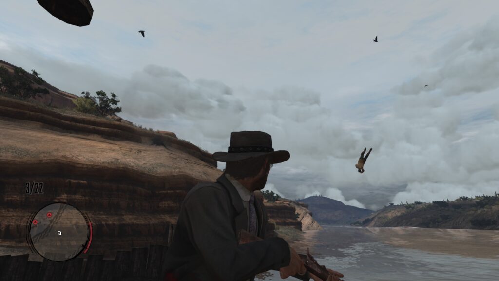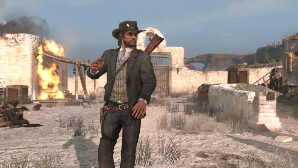 Gdyby, dokonując obliczeń, przyjąć, że The Last of Us ograłem po ośmiu latach od jego premiery na PS3, Heavy Rain po dziewięciu, a nowego dzieła Kena Levine’a wypatruję od jedenastu, nasuwa się wniosek, iż na żadną grę nie czekałem dłużej niż na Red Dead Redemption (oby mi się to zdanie nie odbiło czkawką. Oby Judas ukazał się… wkrótce. W przyszłym roku. Za dwa lub trzy lata. W ogóle). Ukończyłem je wszak piętnaście lat po jego debiucie. W gamingu to nie jedna, nie dwie, a trzy ery (RDR wyszedł w siódmej generacji konsol, teraz mamy dziewiątą). Sporo się w tym czasie wydarzyło i zmieniło. Między innymi – ukazała się genialna „dwójka”, toteż gdy Rockstar zapowiedział rok temu pecetowy port pierwszej części, z datą premiery wyznaczoną na ledwie trzy tygodnie później, obok olbrzymiej radości i zaskoczenia pojawiły się we mnie wątpliwości oraz obawy co do tego, jak się ta gra zaprezentuje po takim czasie i czy na tle sequela nie okaże się, mówiąc wprost, zwyczajnie słaba. Na szczęście – co wiedziałem już po paru godzinach w niej spędzonych – nie ma o tym mowy. Produkcja ta nawet dziś potrafi dostarczyć wciągającej i satysfakcjonującej rozgrywki, będąc przy tym technicznie i optymalizacyjnie doszlifowana niemal na maksa. Nim ktoś pomyśli, że chyba robię sobie jaja, pisząc coś tak oczywistego w kontekście kilkunastoletniej gry, spieszę poinformować, że tak nie jest. Nie robię sobie jaj, nawet takich końskich, które kurczą się na mrozie. Rockstar Games słynie bowiem z dwóch rzeczy: z szalonej, nieosiągalnej dla innych (może z wyjątkiem Naughty Dog) dbałości o detale oraz z fatalnych, kulawych komputerowych wersji swoich gier, przynajmniej na ich premierę. Tymczasem debiut RDR na blaszakach odbył się bez dramatów i kompromitacji (pytanie tylko, czy za wyjaśnieniem tego fenomenu nie kryje się fakt, że za tę konwersję odpowiada nie Rockstar, a studio Double Eleven. Pozostawiam je otwarte). Tytuł ten chodzi ultra stabilnie, nie wysypuje się, nie jest też festiwalem błędów i gliczy: nie uświadczy się tu lewitujących przedmiotów czy ludzi (zanim ktoś z Was, Czytelnicy, dostrzeże na jednym ze screenów podejrzany kształt na niebie, zadający kłam mym zapewnieniom, od razu wyjaśnię. Otóż nie jest to ptak, nie jest to samolot. To jest człowiek, faktycznie. I to nie obdarzony super mocami, a taki zwykły, najzwyklejszy czarny Ziutek, co z kilerami pod Celiny chodzi dom. Jego obecność w powietrzu nie jest jednak wynikiem buga, lecz mojego celnego strzału w pobliską beczkę prochu. Ponadto, zgodnie z kierunkiem działania siły grawitacji, spada on w dół, a nie wznosi się w górę. Tak że wszystko jest – powtarzam – we właściwym porządku). Jeślibym już musiał wskazać jakąś techniczną bolączkę, to czepiłbym się trochę przydługich loadingów, których czas trwania wystarczyłby do przeładowania kilku magazynków w rewolwerze, ale wiecie co? Nie będę się czepiał. Nie chcę brzmieć jak jeden z tych wiecznie niezadowolonych, roszczeniowych malkontentów, jakich w Internecie pełno. Przeciwnie: jestem wdzięczny, że Rockstar w końcu zaoferował mi ten port (co po tylu latach wcale nie było oczywiste), i cieszę się niezmiernie, że wreszcie miałem okazję RDR ograć.
