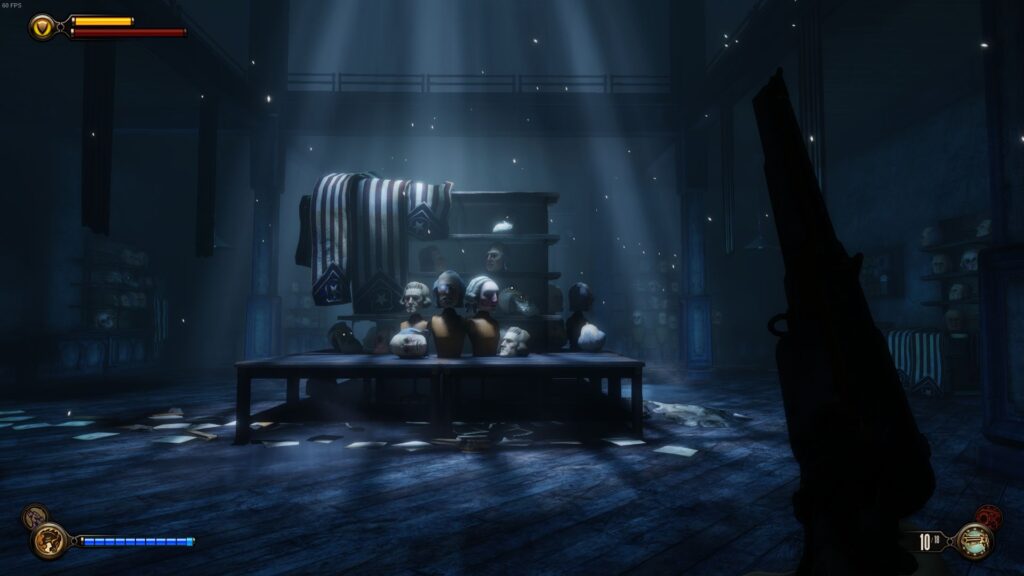 To było dokładnie dziesięć lat temu, gdy piękniejsza, kasztanowo-złota postać jesieni ustąpiła miejsca mglisto-szarym barwom oraz zimnym listopadowym deszczom. Ów sprzyjający zadumie klimat nie wpływał jednak w żaden sposób na moje gamingowe wybory: oto od półtora roku pozostawałem w marazmie, w który wbił mnie Mass Effect 3. Był to czas zamknięcia się przeze mnie na nowe doświadczenia, kiedy – przeświadczony, że już nigdy żadna gra nie pozamiata mną tak, jak uczynił to finał przygód komandora Sheparda – topiłem smutki w butelkach wó… znaczy się w World of Tanks. Ta będąca wówczas fenomenem zręcznościówka MMO dawała mi bezpieczny azyl i wypełniała pustkę po produkcjach singleplayer, stanowiąc niejako ich substytut. Z tego bezowocnego odrętwienia wyrwała mnie dopiero gra doręczona mi w pudle, którego sam już gabaryt zdawał się zwiastować jej wielkość*. I teraz, po dziesięciu latach, ukończyłem ją po raz drugi, chcąc zmierzyć się z ciężarem legendy tytułu, który uzyskał w moich oczach status kultowy i mimo osiągnięcia olbrzymiego sukcesu komercyjnego (11 milionów sprzedanych egzemplarzy, w tym 4 premierowo) i artystycznego (uznanie zarówno krytyki, jak i graczy) doprowadził do zamknięcia studia odpowiedzialnego za jego stworzenie. Toteż w tej powtórnej podróży przez Columbię przewodnikami byli mi: czuwający nade mną niczym anioł stróż duch rozwiązanego Irrational Games oraz wciąż żywe wspomnienie geniuszu twórczego człowieka, którego nazwisko będę dziś przytaczał wielokrotnie – Kena Levine’a.